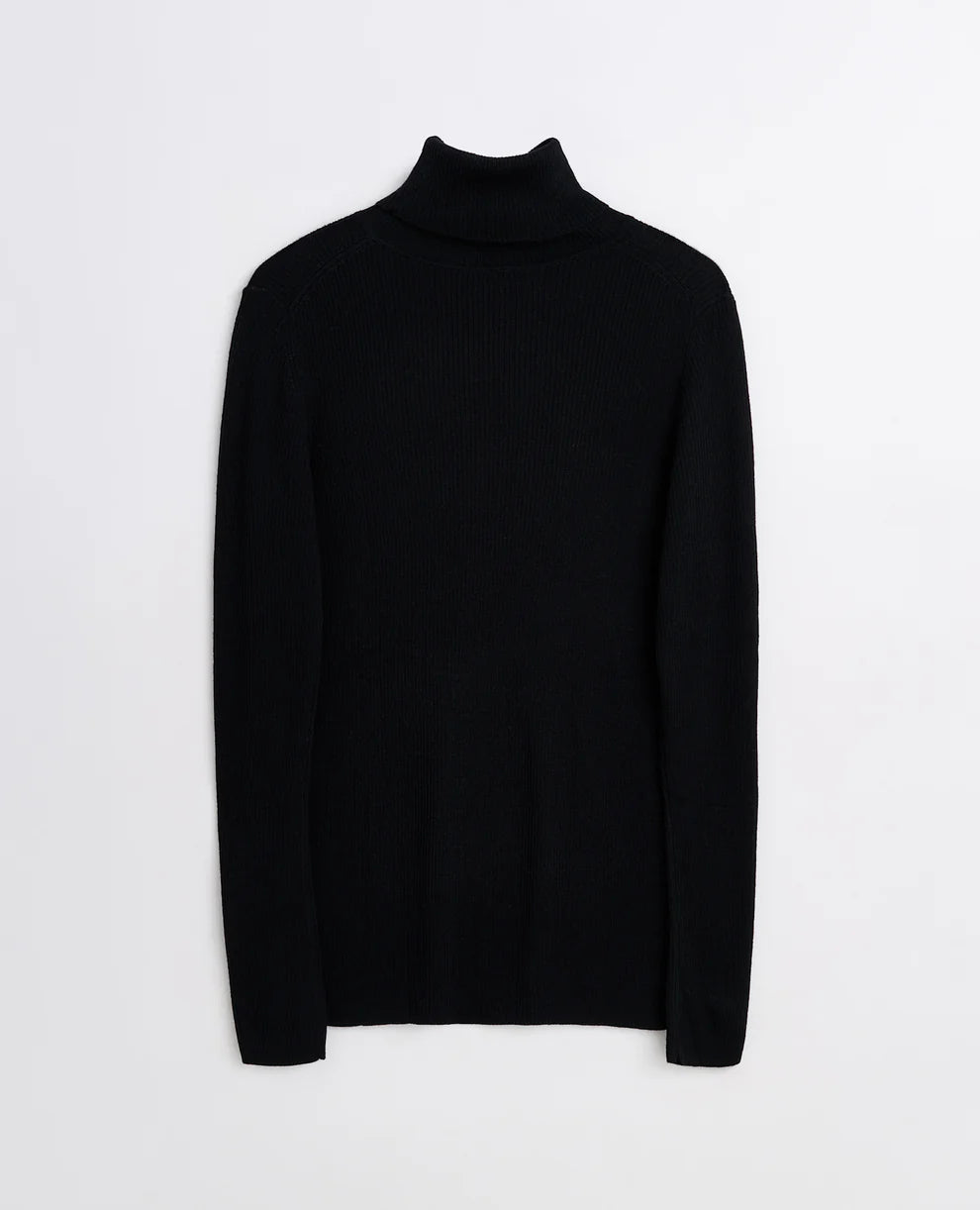 Merino Rib Turtleneck Sweater - Black