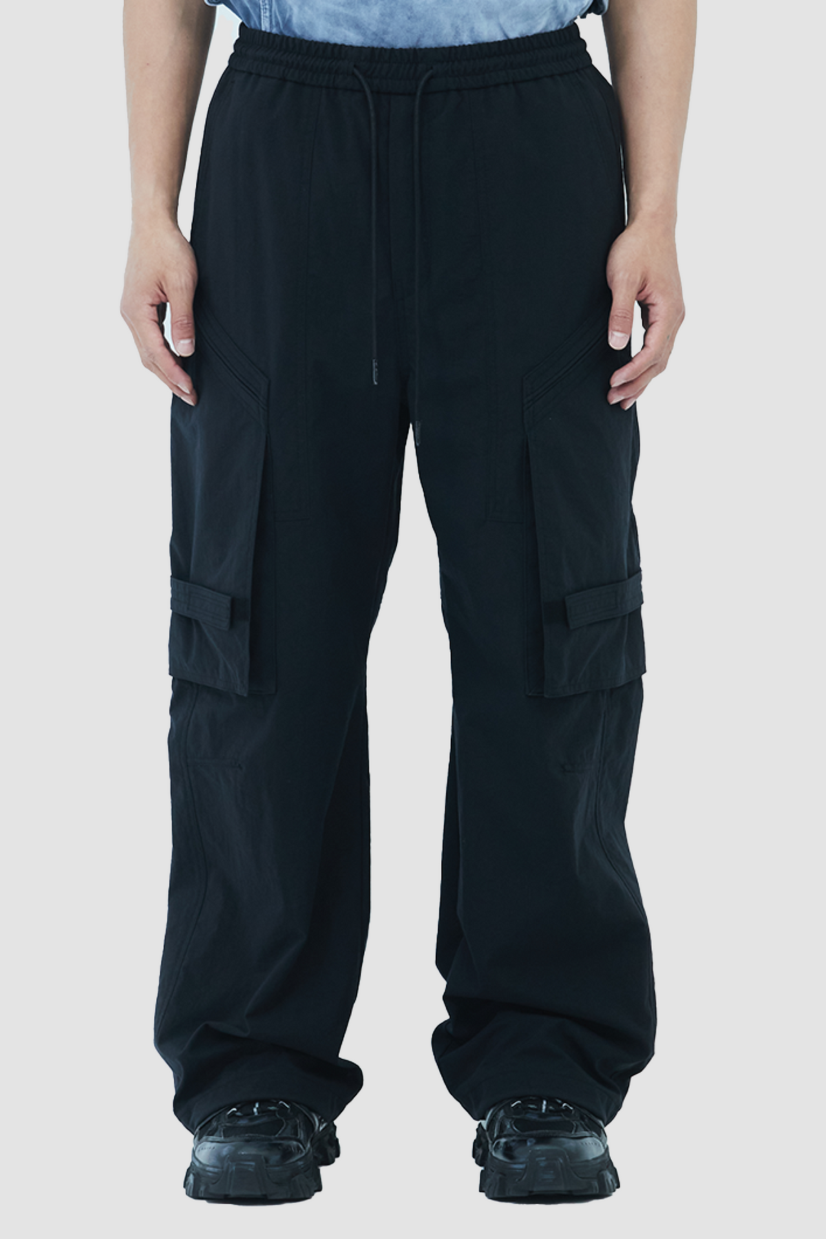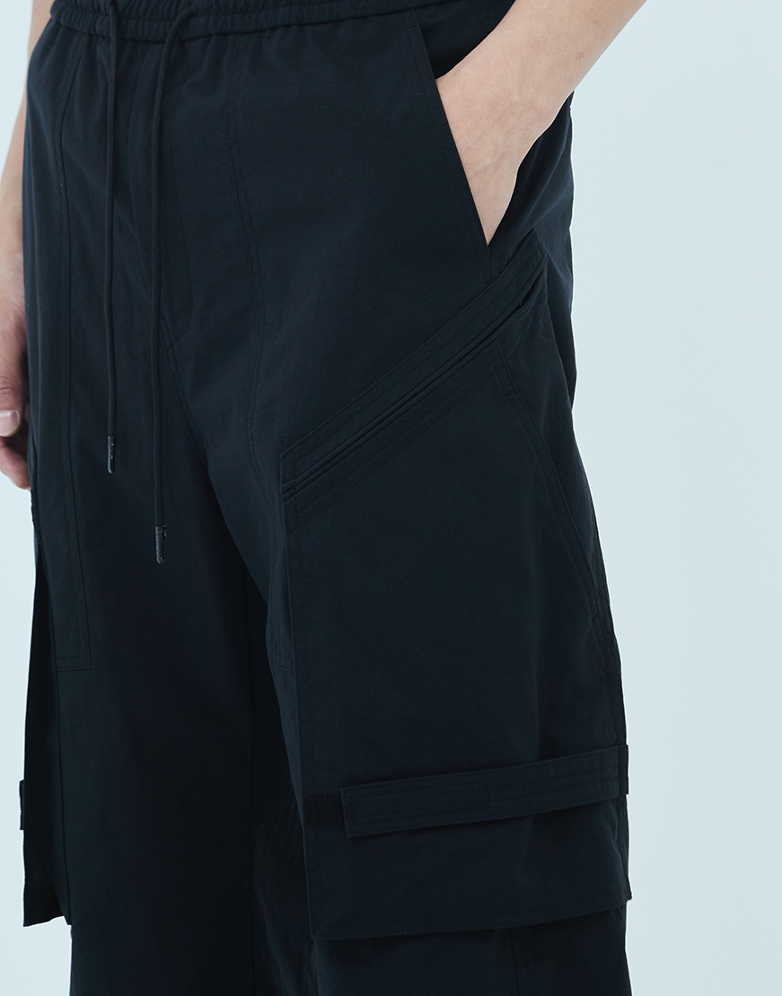 Nylon Strap Cargo Pants - Black