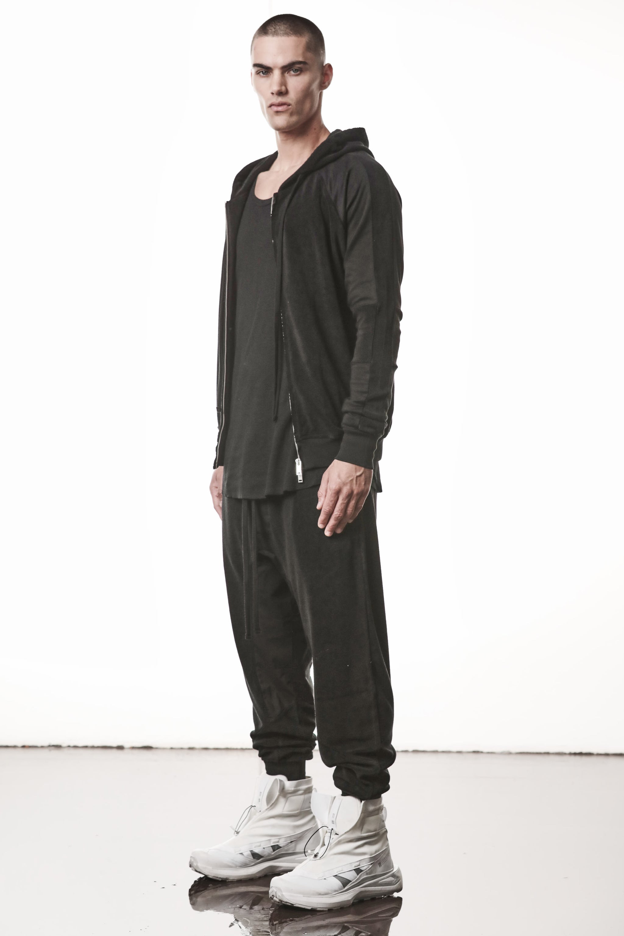 Thom/Krom was founded by Thomas Kromik, focusing on a monochrome design universe. His line features urban styles with a critical taste for effortlessly wearable items that go against the mainstream.